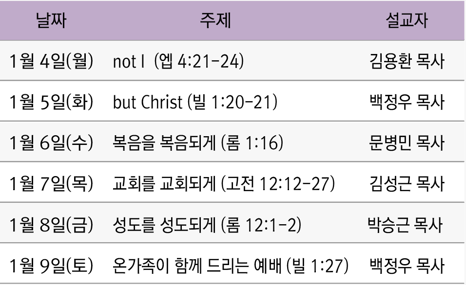 *1월 6일 수요예배는 특별새벽기도회 관계로 드리지 않습니다.